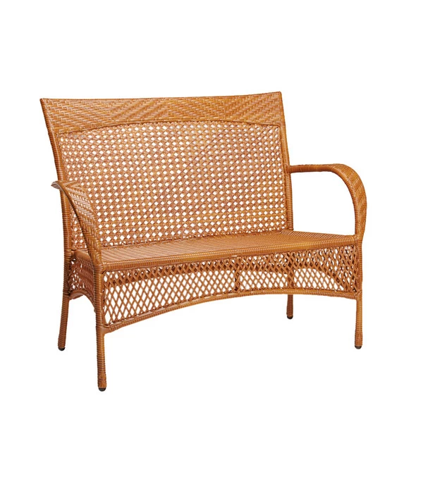 Die Best Alu-Korbbank Madelene ist ein attraktiver und praktischer 2-Sitzer, den Sie sowohl in Ihrem Innen-, als auch in Ihrem Außenbereich prima verwenden können. Zur Herstellung der Bank wurde ein hochwertiges Kunstfadengeflecht verwendet, das im Gegensatz zu natürlichen Materialien zuverlässig witterungsbeständig ist. Weder Sonneneinstrahlung noch Nässe können ihm etwas anhaben. Dieses lichtdurchflutete Flechtwerk verleiht der Bank eine klassische und edle Optik. Die Best Alu-Korbbank Madelene besitzt ein stabiles Aluminiumgestell und ist so extra robust und strapazierfähig. Besonders praktisch: Mehrere Best Alu-Korbbänke Madelene sind ganz einfach übereinander stapelbar.