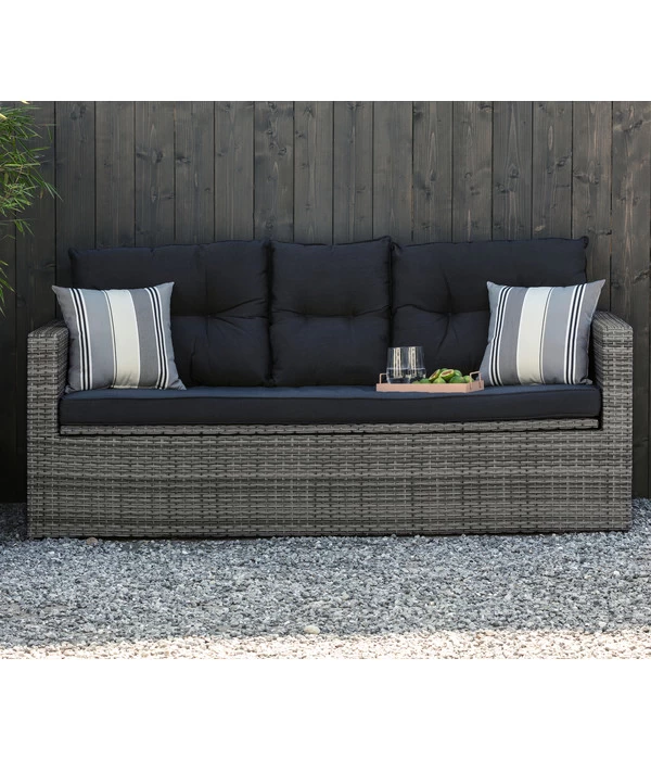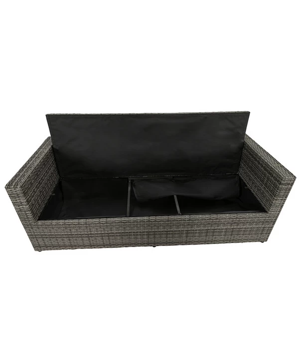 Wie schön, dass es jetzt Gartenmöbel gibt, die den gleichen Komfort bieten wie die Indoor-Möbel. Und die mit dem gleichen hohen Anspruch an Design und Qualität gefertigt werden, aber zugleich mit bester Wetterfestigkeit punkten. Und obwohl diese vielen Pluspunkte inzwischen auf viele Gartenmöbel zutreffen, freuen wir uns, Ihnen mit der Dehner Flecht-Truhenbank ‘Föhr‘ ein ganz besonderes Modell vorstellen zu können. Ein Loungesofa, das Sie mit einem Komfort verwöhnen wird, den so manches Indoor-Sofa nicht hat. Lassen Sie sich bald in jeder freien Minute auf Ihr neues Gartensofa sinken und spüren Sie, wie die vielen Polster und Kissen Sie wunderbar weich umfangen und Ihnen die Stunden versüßen. Mit einer stattlichen Breite von 188 cm bietet die Dehner Flecht-Truhenbank ‘Föhr‘ bequem bis zu 3 Sitzplätze; sind Sie allein, können Sie sich aber auch lang darauf ausstrecken und ein kleines Nickerchen machen. Und ist schlechtes Wetter angesagt, verstauen Sie einfach die Polster und Kissen in dem Raum unter der Sitzfläche. Lassen Sie jetzt die Dehner Flecht-Truhenbank ‘Föhr‘ Ihren Sommer noch schöner machen!