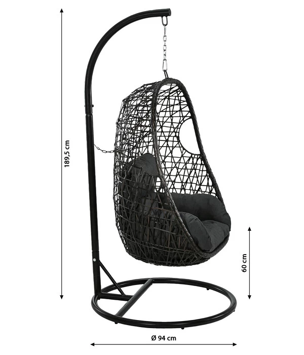 Der Sessel ist außerdem mit 8 cm dicken, weich gepolsterten Sitz- und Rückenkissen ausgestattet, so dass Sie sich wie auf Wolke Sieben fühlen, wenn Sie im Sessel sitzen. Die Kissen haben außerdem einen strapazierfähigen Bezug, der dank der hochwertigen Polyesterqualität sogar schmutzabweisend ist. Gönnen Sie sich diese exklusive Art der Entspannung – mit dem Dehner Hängesessel ‘Hawaii‘.