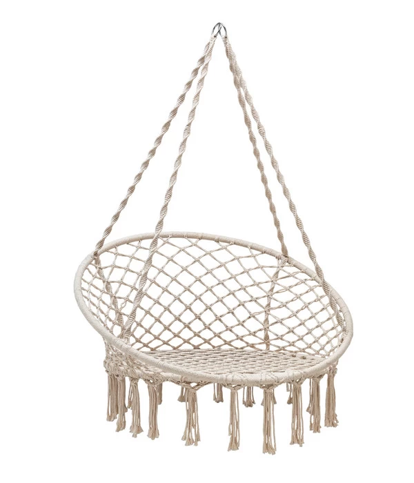 Der schwebende Sessel verspricht einen sicheren Halt. Seine stabile Stahlbefestigung ist sogar bis zu 120 kg belastbar. Damit Sie sich extra angenehm einkuscheln können, wurde die Sitzmöglichkeit außerdem mit einem hautfreundlichen Baumwoll- und Polyesterstoff ausgestattet. Gönnen Sie sich diesen Ort zum Relaxen und bestellen Sie den Hängesessel Nika von Dehner noch heute!