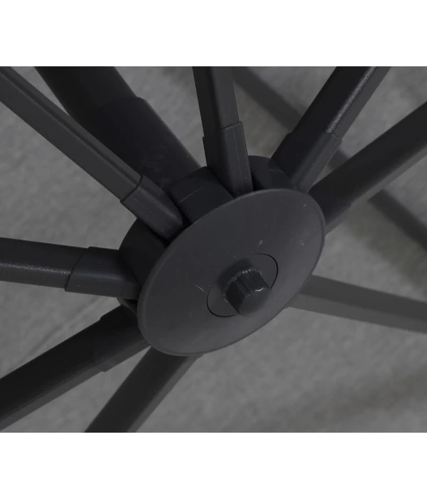Der Siena Garden Ampelschirm Cirrus lässt sich natürlich auch ganz bequem öffnen und schließen. Alles, was Sie dafür tun müssen, ist das Betätigen der praktischen Kurbel. Ihr neuer Sonnenschutz überzeugt außerdem mit einem enorm soliden Gestell aus pulverbeschichtetem Aluminium und einer äußerst robusten Bespannung aus hochwertigem Polyestergewebe mit 240 g/m² Stoffstärke. Darüber hinaus ist die hochwertige Verarbeitung an jedem Detail zu erkennen – von der Strebe bis zur Schraubverbindung.