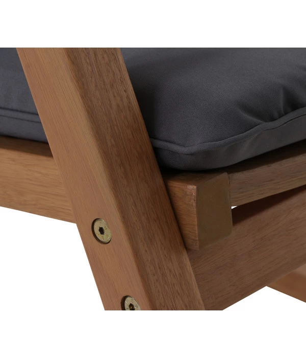 Dass es sich beim Siena Garden Schaukelsessel Alva um etwas Besonderes handelt, zeigt schon allein das massive Eukalyptusholz, aus dem er gefertigt wurde. Ein herrliches Outdoorholz mit Charakter, dessen dekorative Maserung durch die Ölung im Teak-Look wunderbar hervorgehoben wird. Selbstverständlich handelt es sich dabei um Holz aus FSC®-zertifiziertem, nachhaltigem Plantagenbau, bei dem auf die Erhaltung der Ökosysteme geachtet wird.
