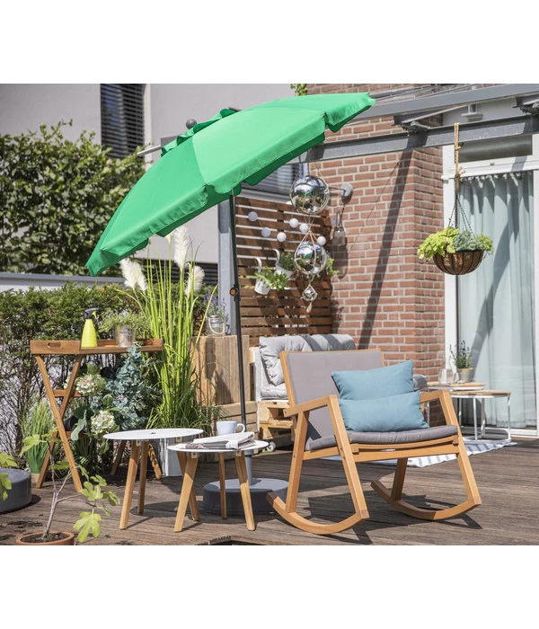 Geht es Ihnen auch so: Manchmal wird man von einem Möbelstück gefunden. Ein Blick, einmal mit der Hand darübergestrichen und es ist um Ihr Herz geschehen. Das könnte Ihre Geschichte zum Siena Garden Schaukelsessel Alva sein. Denn dieses einzigartige Outdoorsitzmöbel ist an Ausstrahlung kaum zu übertreffen. Eigentlich sehr schlicht und – bis auf die Kufen – sehr geradlinig gestaltet, wirkt an diesem Sessel jedes einzelne Detail. Dabei verleiht ihm die dekorative Maserung des massiven Holzes seinen natürlichen, edlen Charme und lädt die breite Sitzfläche zum Hineinsetzen ein. Der leichte Schwung in Lehne und Sitzfläche lässt erahnen wie bequem Sie darinsitzen werden und die Armlehnen versprechen absolute Entspannung. Verwöhnen Sie sich deshalb mit einem Siena Garden Schaukelsessel Alva und dann schaukeln Sie sich auf Ihrer Terrasse sanft in den Feierabend!